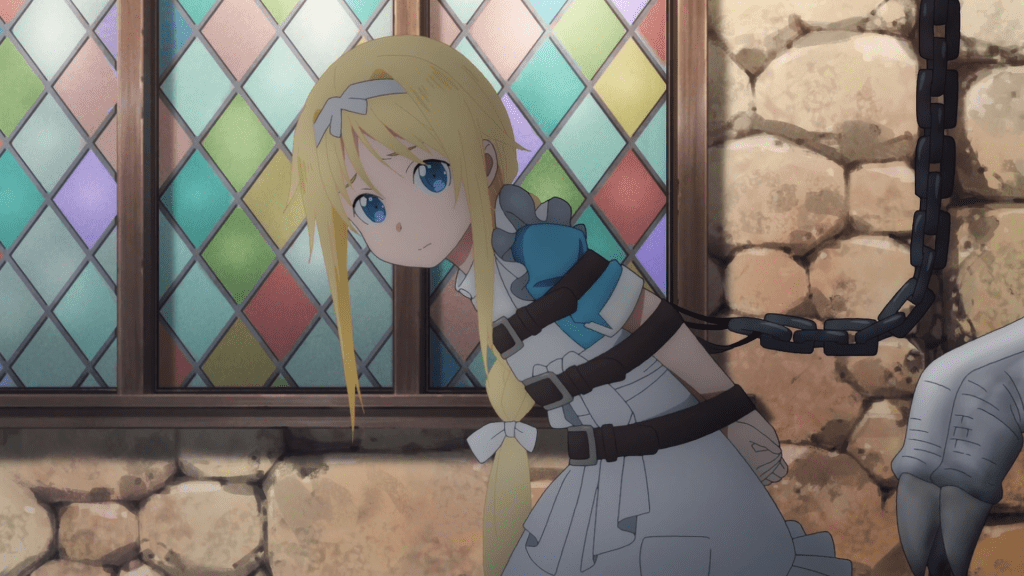 As I’ve said before with Sword Art Online, it’s not enough to just think sexual abuse is bad. In the first place, there was no need for this scene to exist. The narrative of Eugeo and Kirito standing up for justice in spite of law did NOT need sexual abuse. If the subject is going to be done at all, it needs to be handled with an incredible amount of care and empathy. To that end, Alicization is as delicate as a sledgehammer. It’s a disgusting and tasteless scene, and if that’s enough to turn you off then I have no reason to blame you.