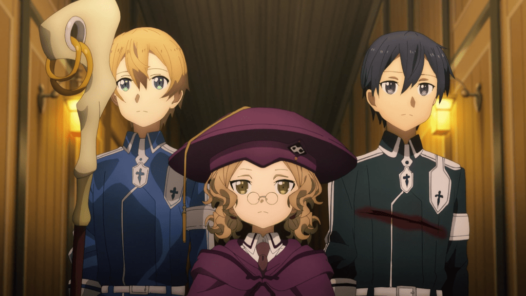 Alicization is pretty clear in its goals. The narrative stakes, character motivations and general concepts of its world form a cohesive whole; with most scenes carrying a sense of purpose. Moreover, it’s generally clear in its theming. Kirito’s journey as a stranger in this land trying to find a sense of belonging. The conflict between what’s lawful and what’s morally right. The value of sentient artificial life versus the value of organic life. These ideas remain consistent, and develop naturally through the story.